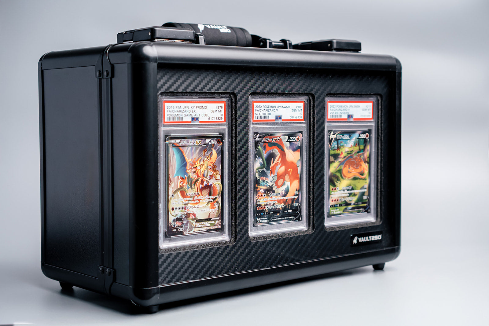 The front display of VAULT250™ Slab Case Outlook is specially designed for PSA sized Slabs.The inner compartment can fit all slabs from popular grading companies such as PSA, BGS, CGC and PCG.